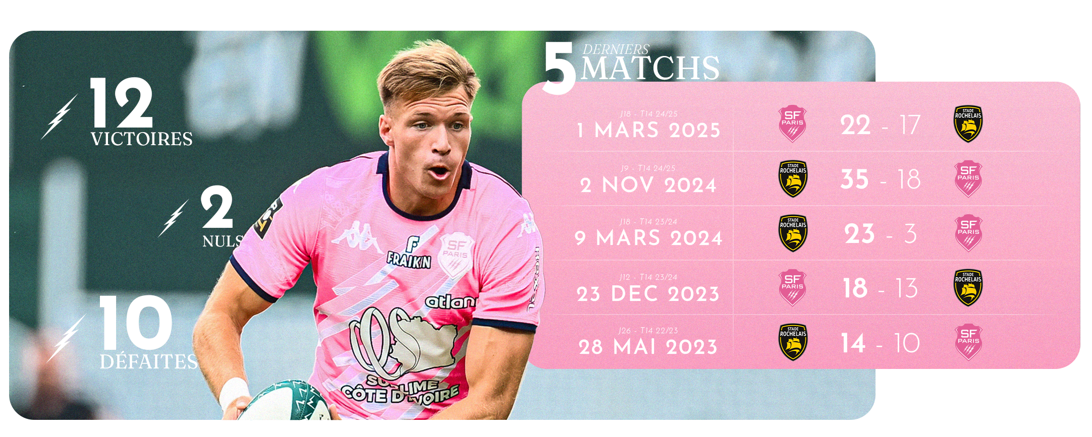 Adversaire redouté pour sa puissance physique et son mental à toute épreuve, La Rochelle reste un prétendant sérieux au titre. Pour le Stade Français Paris, affronter les Maritimes, c’est toujours un combat au sommet.