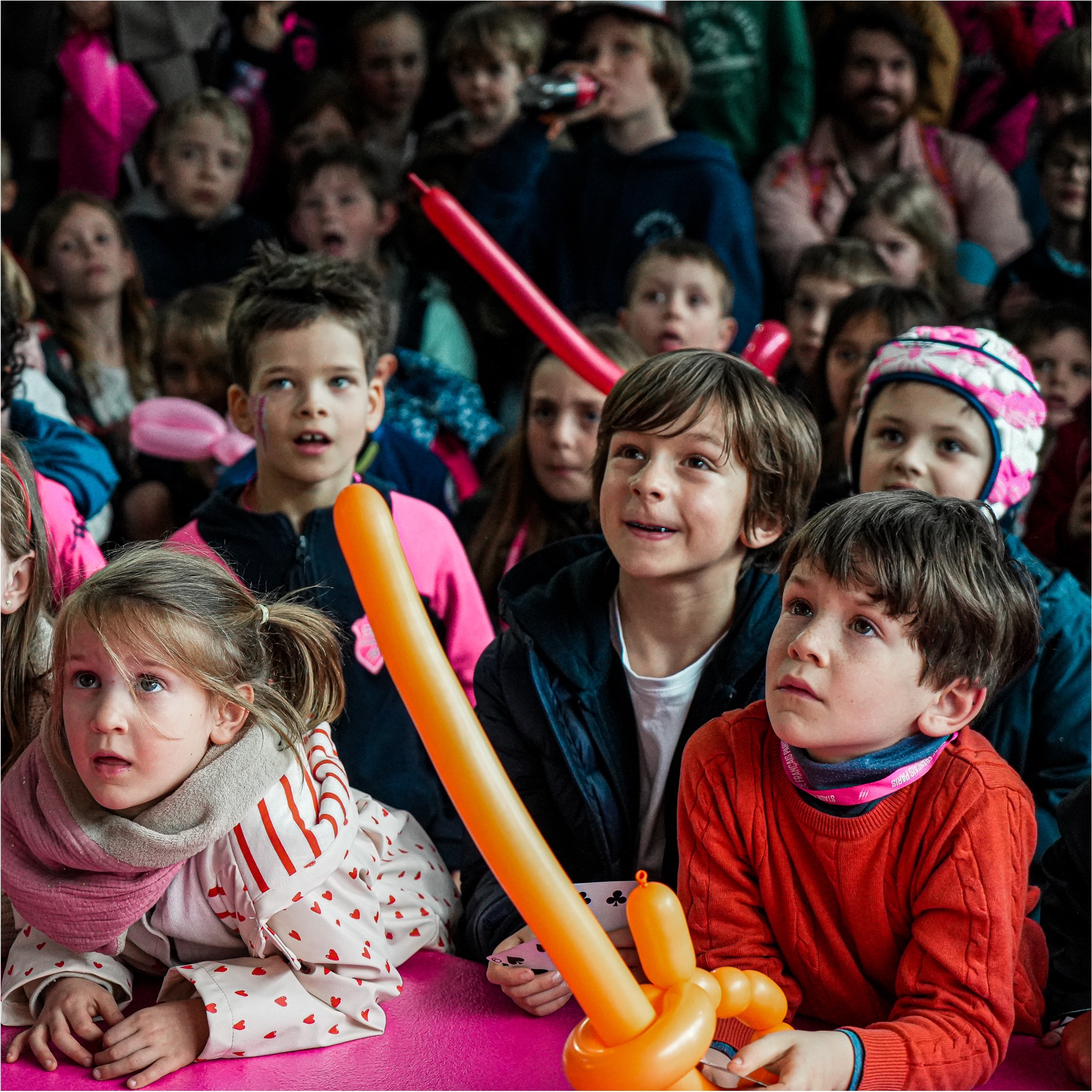 - Spectacles en continu : Magiciens, clowns et jongleurs déambulent pour mettre des paillettes dans les yeux des petits et des grands.